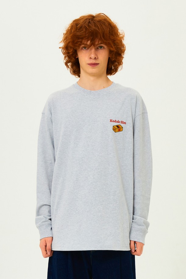 피치 기모 필름 와펜 긴팔 티셔츠 MELANGE GREY