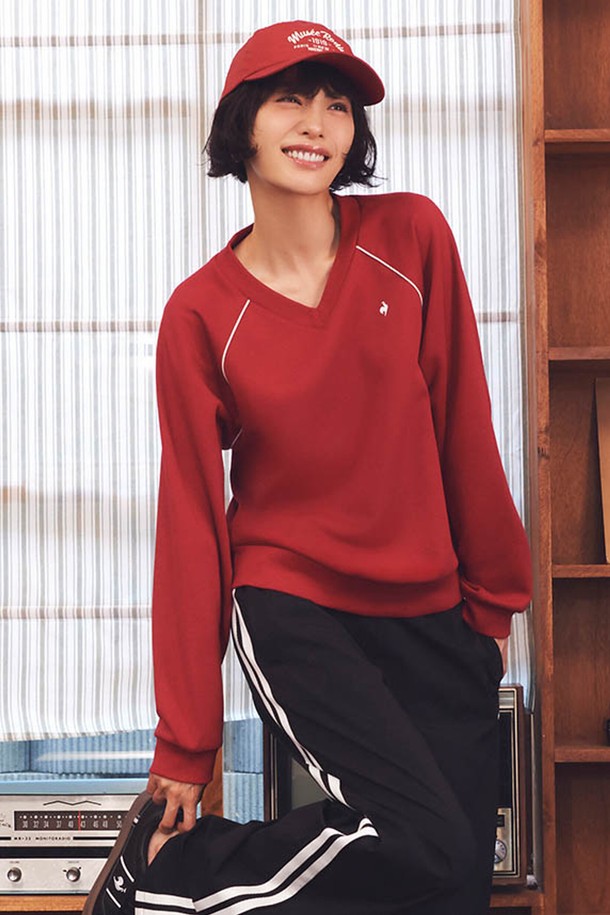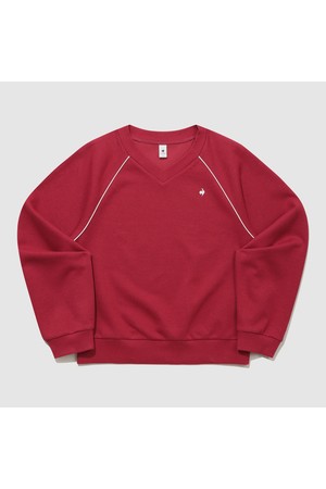 여성 에센셜 브이넥 루즈 맨투맨 - 레드(QQ322LFS91)