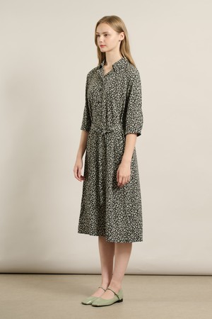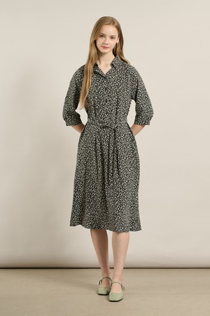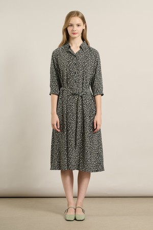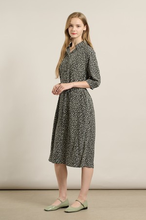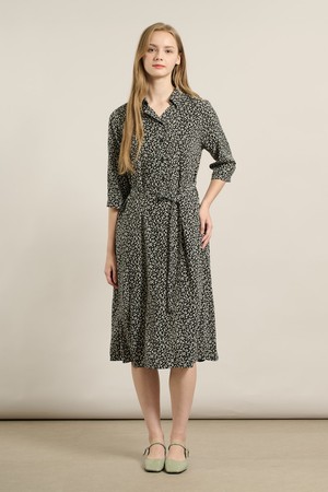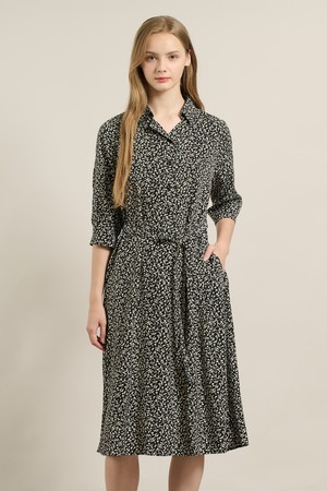 [25FA] 반오픈 뒤밴딩 프린트 원피스 - BLACK A5F8O62599