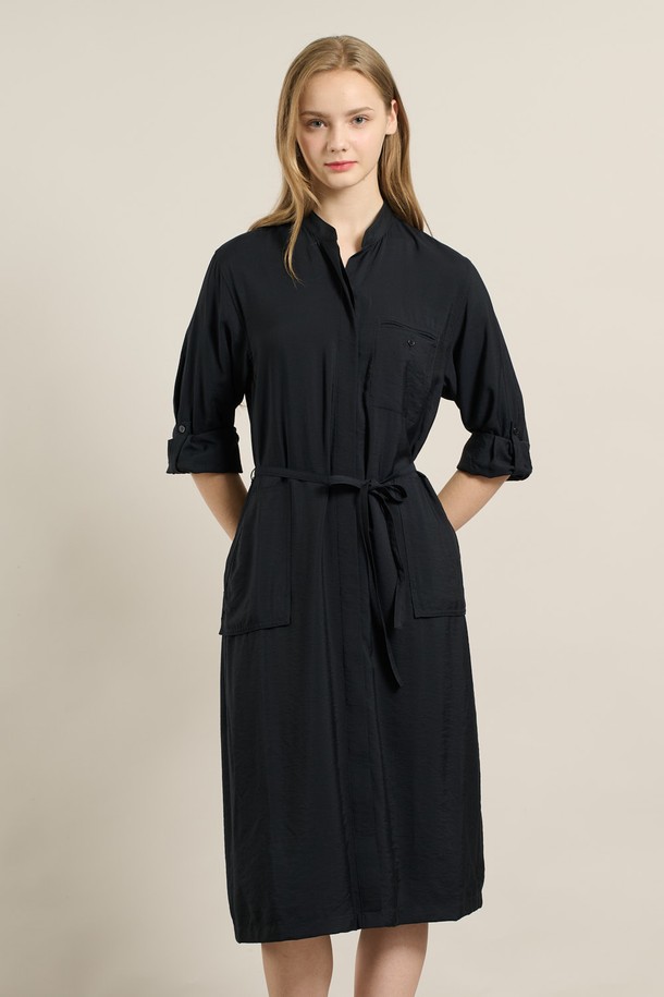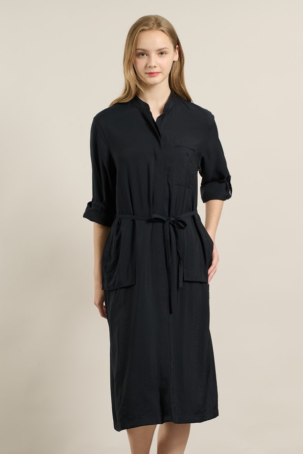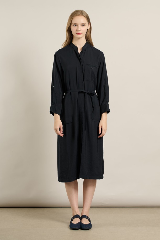 [25FA] 벨티드 밴드넥 원피스 - DARK NAVY A5F8O62656