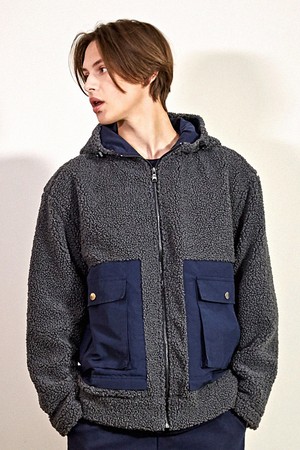 빅입체포켓 배색 양털 뽀글이 후드집업 패딩점퍼 CTS22WKHJB49 GRY