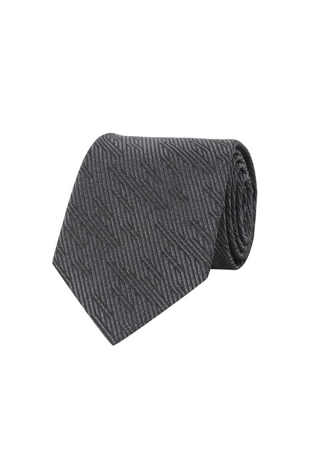 기하학 스트라이프 패턴 슬림 넥타이 그레이