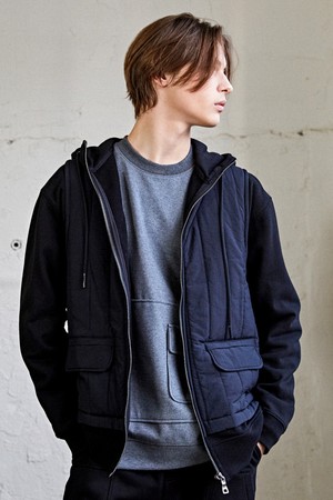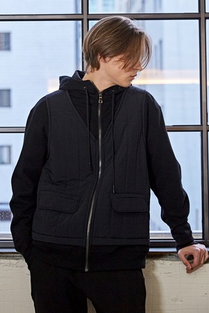 세로퀼팅 패딩베스트 레이어드 헤비쭈리 오버핏 남자 후드집업 CTS22WKHJA48 BLA