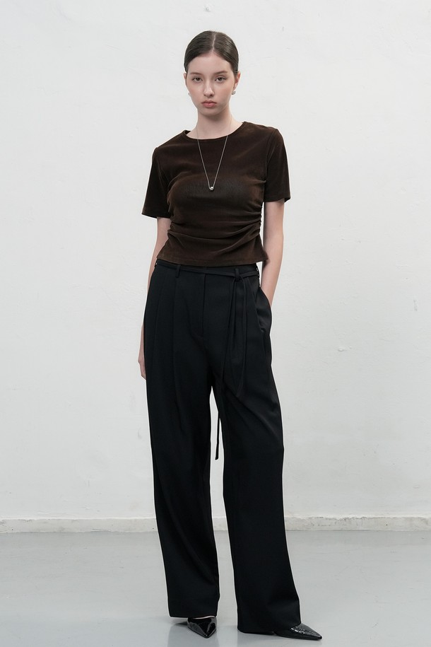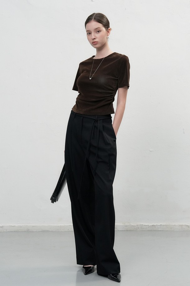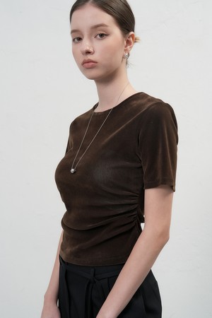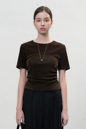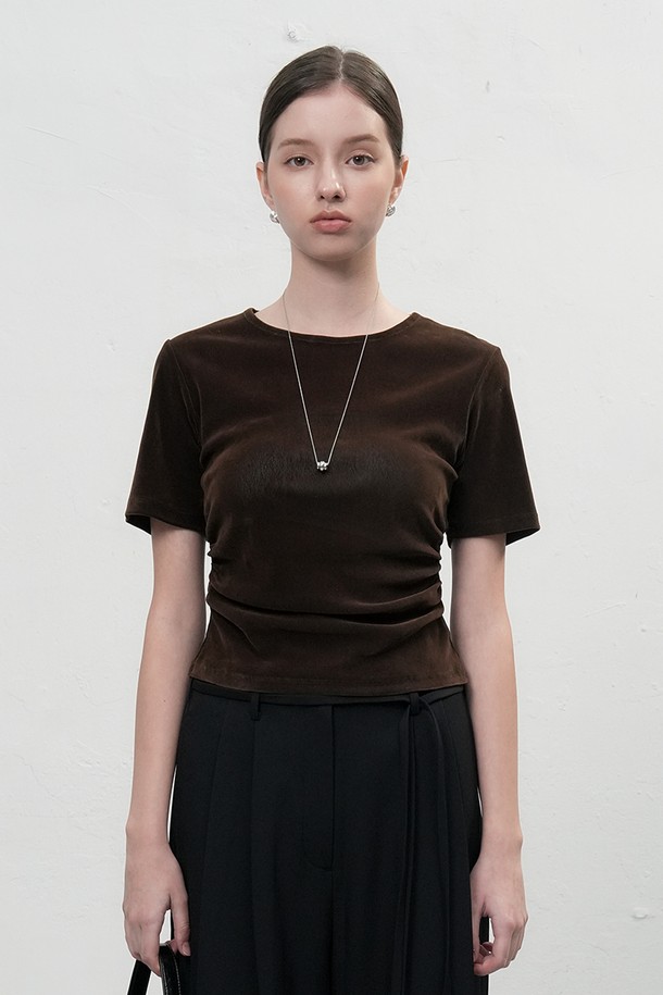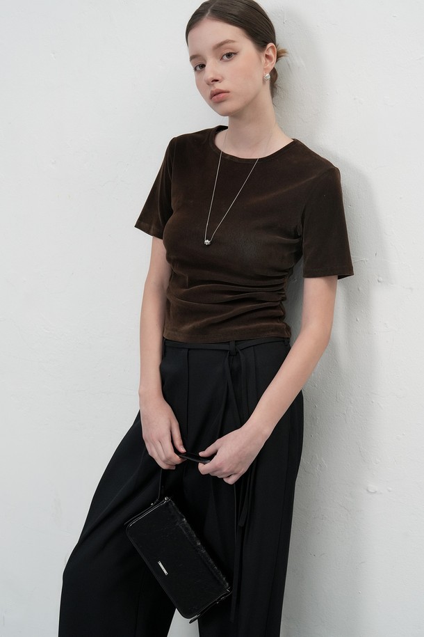 [25FW] WOMAN 벨벳 셔링 반팔 티셔츠 [3COL] / WBE3L01504