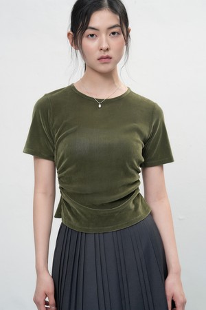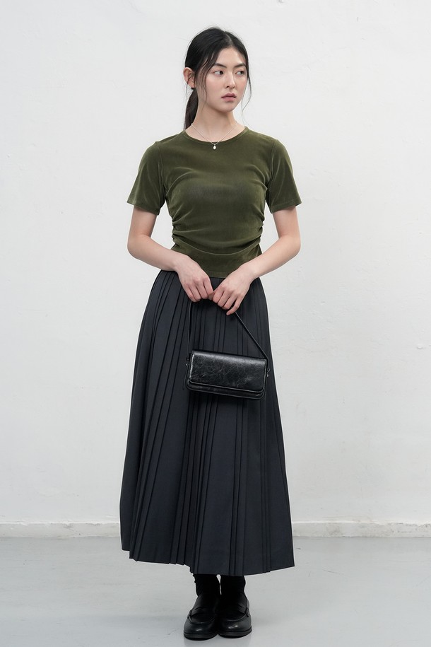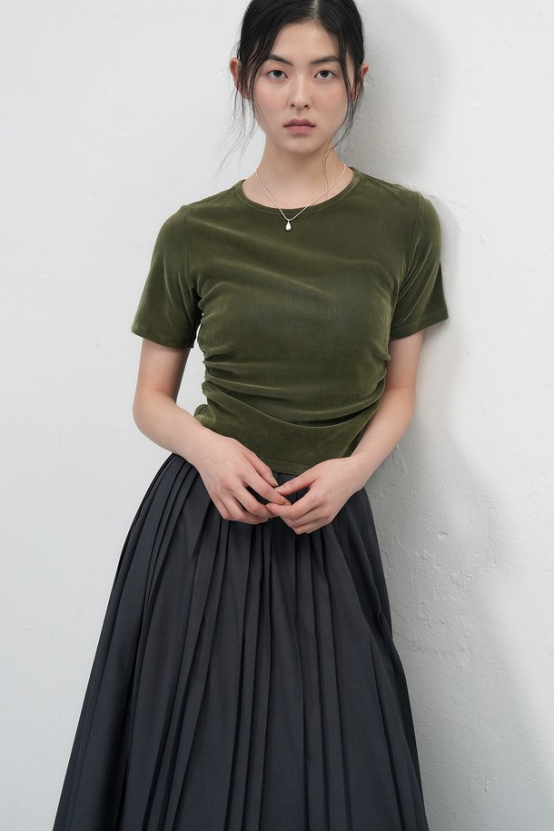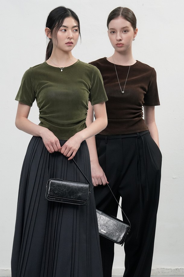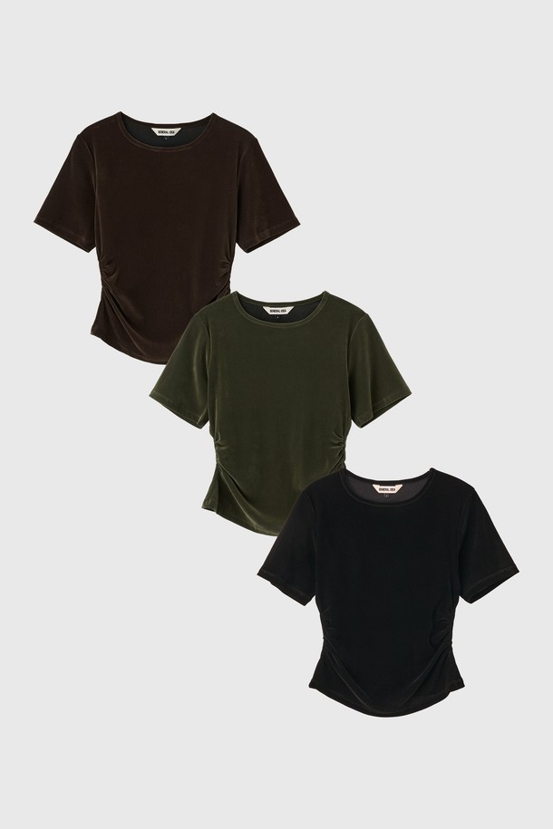 [25FW] WOMAN 벨벳 셔링 반팔 티셔츠 [3COL] / WBE3L01504