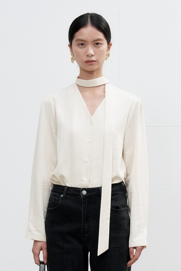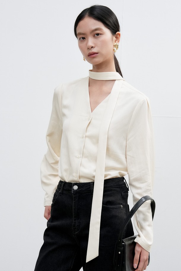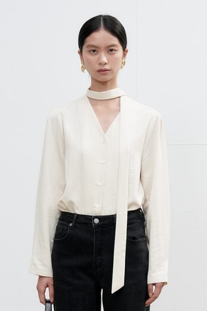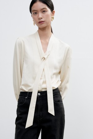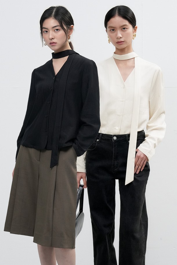 [25FW] WOMAN 브이넥 타이 블라우스 [2COL] / WBE3L03503
