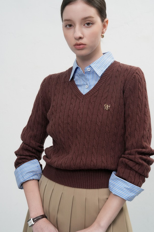 [25FW] WOMAN 울 케이블 브이넥 풀오버 [4COL] / WBE3L05504