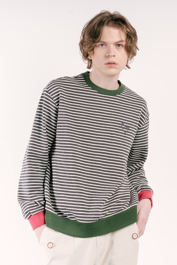 스트라이프& 립믹스 하트로고자수 오버핏맨투맨 CXSCOSKMT202