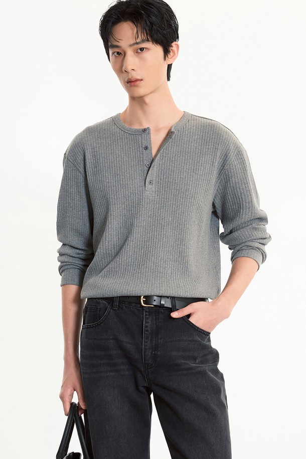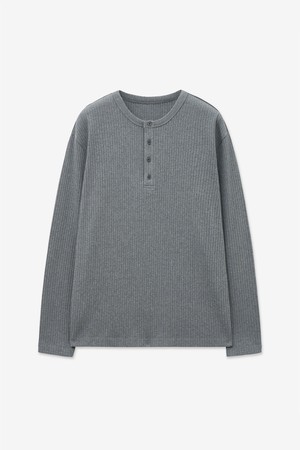 Ribbed Henley Neck T-Shirt (Grey) TNTS5F100G2