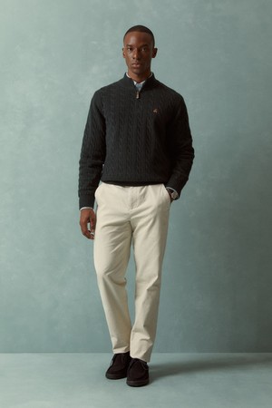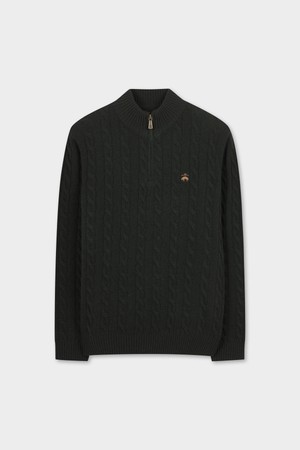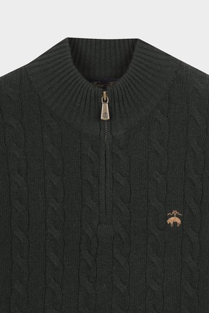 [Online Exclusive] 반집업 케이블 스웨터 (다크그린) (BBWZMOF411)
