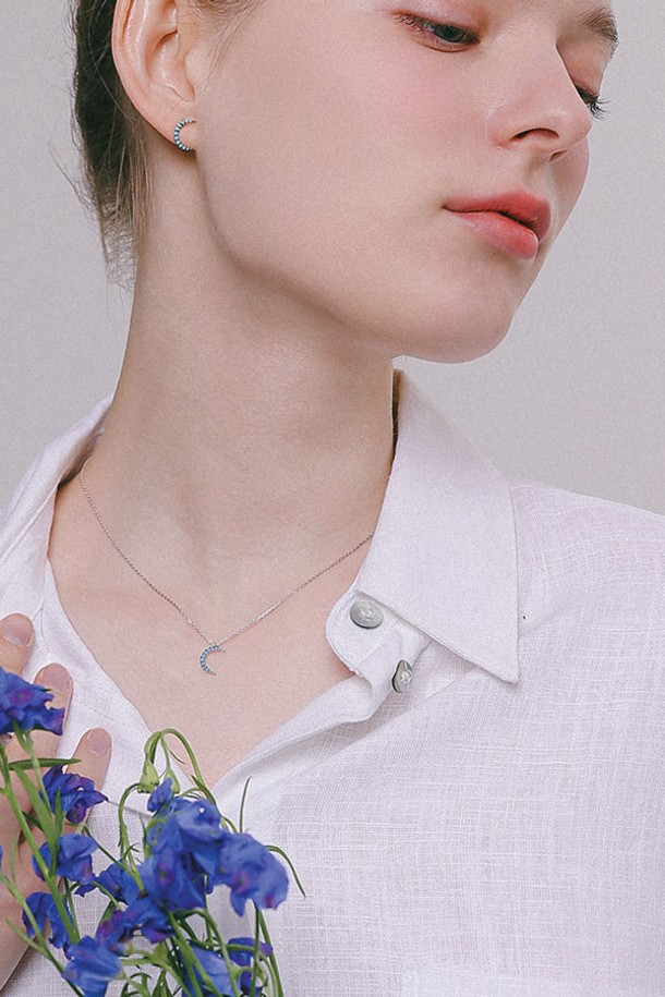 터키 큐빅 크레센트 실버 목걸이 N01211