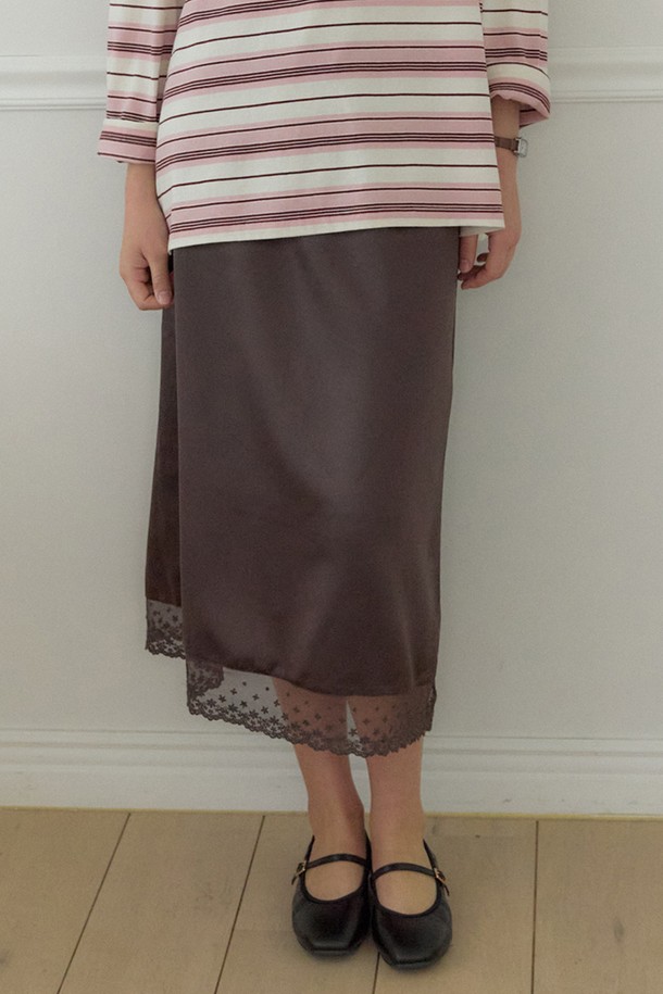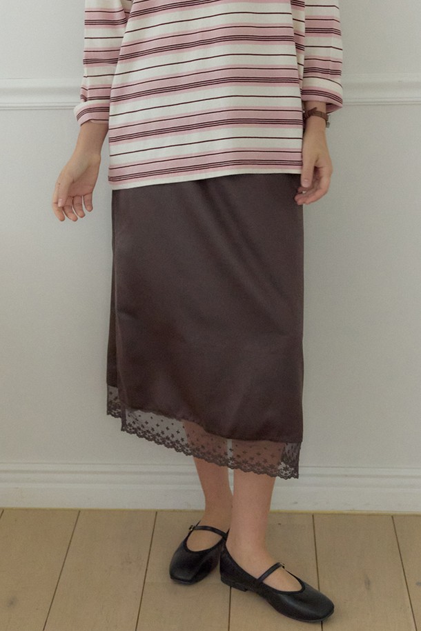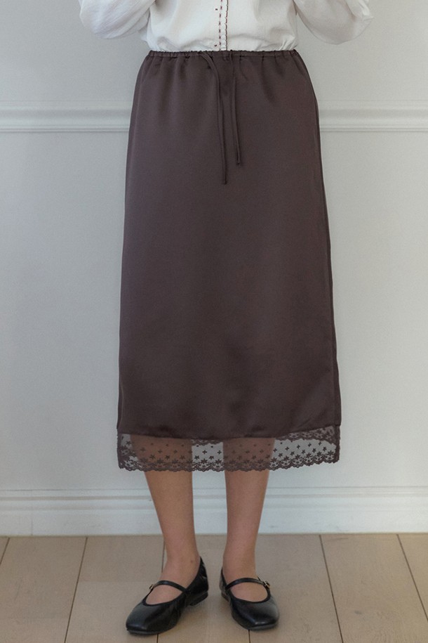 Satin Lace String Skirt - Brown