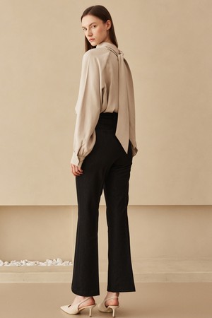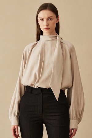 투턱 스카프 블라우스 - 베이지 / Two Tuck Scarf Blouse - Beige