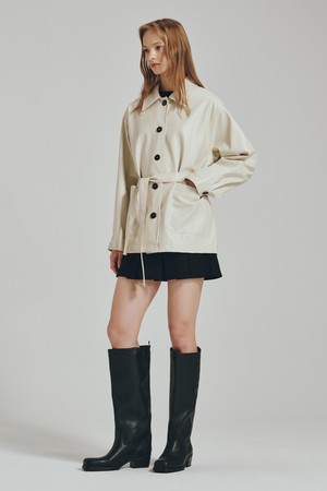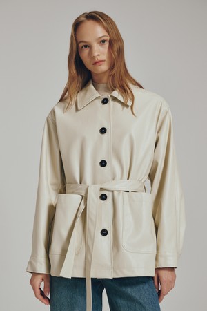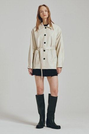 벨티드 레더 자켓 - 크림 / Belted Leather Jacket - Cream