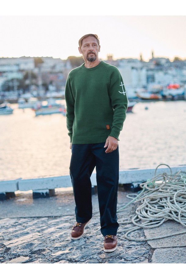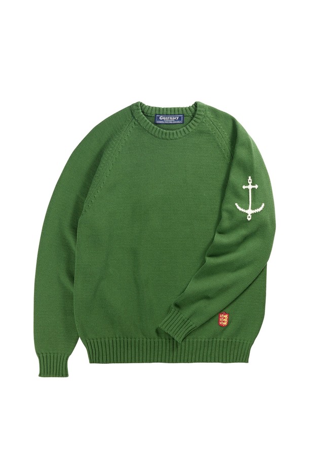 코튼 나그랑 크루넥 스웨터 - 모스 그린