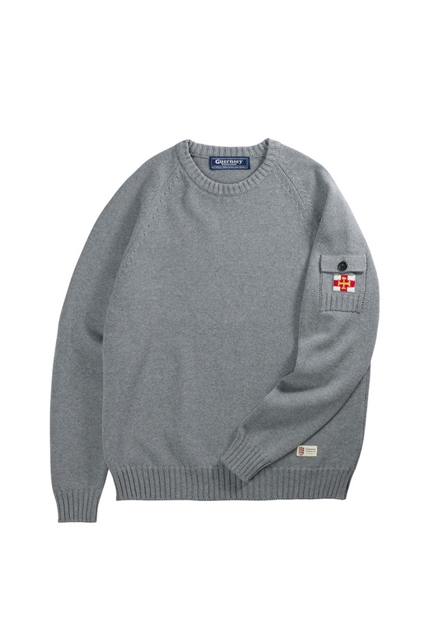 코튼 나그랑 포켓 스웨터 - 멜란지 그레이