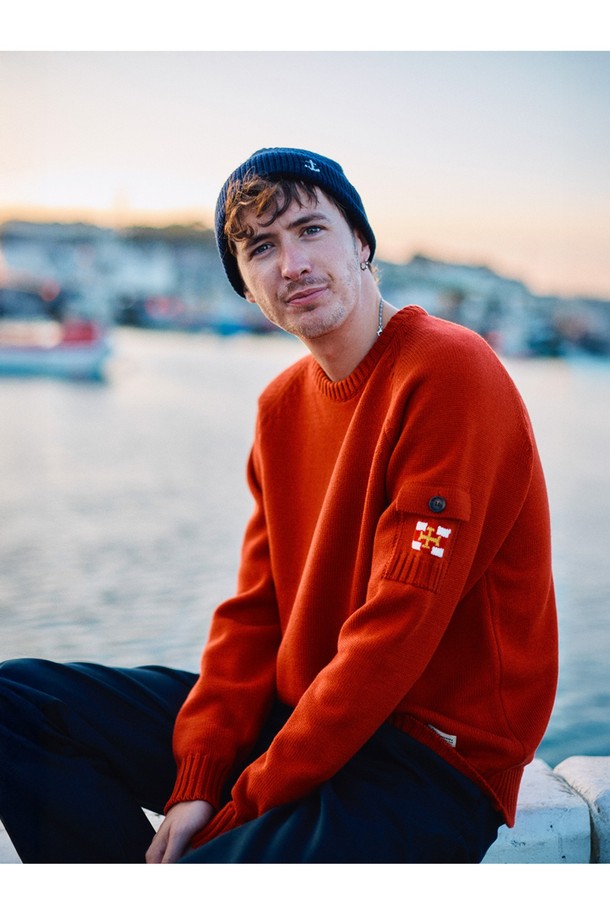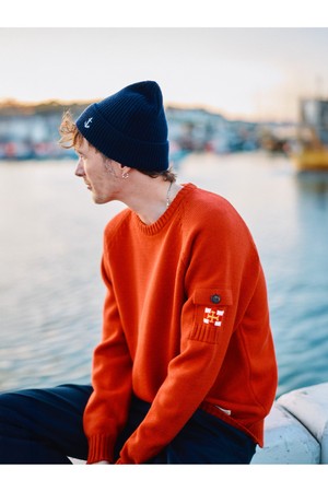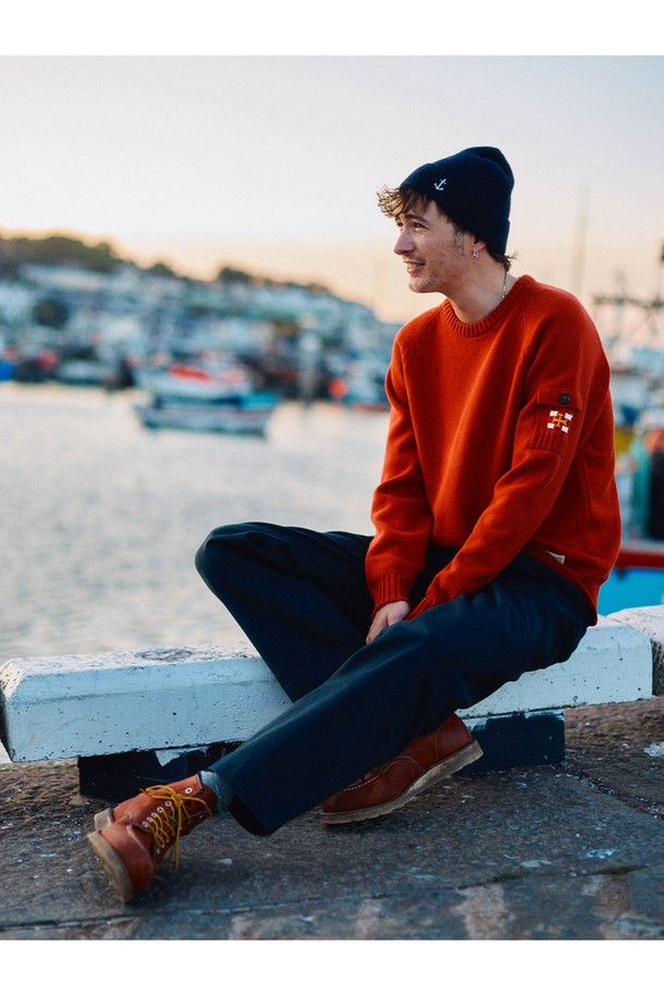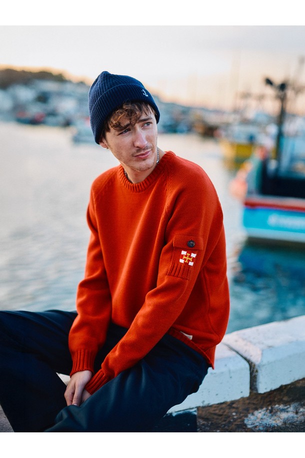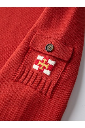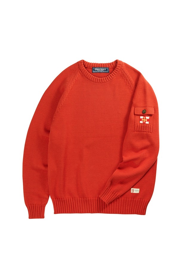 코튼 나그랑 포켓 스웨터 - 오렌지 레드