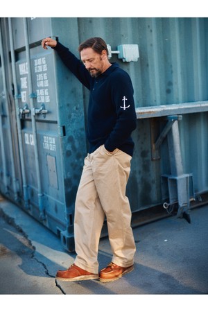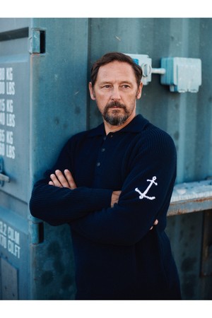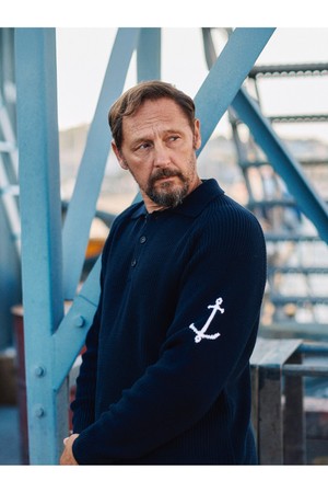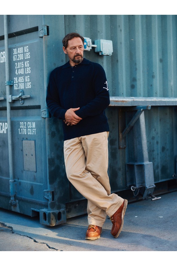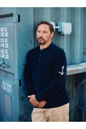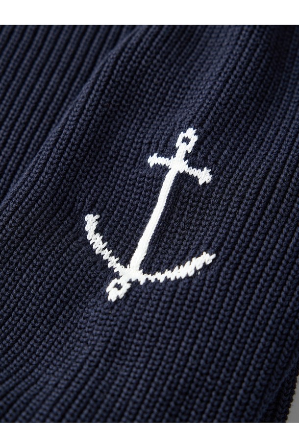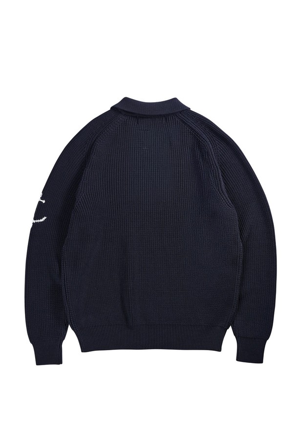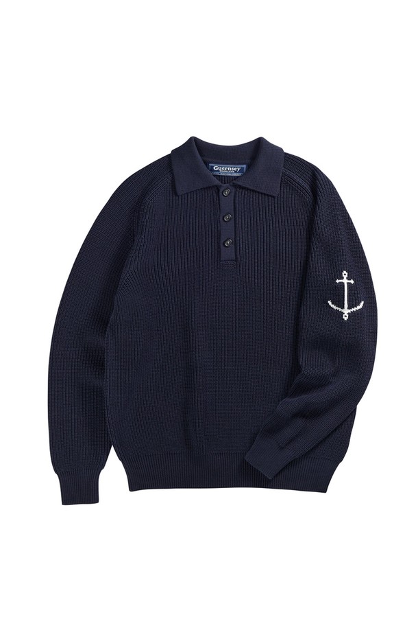 머서라이즈 코튼 새들 카라 니트 - 네이비