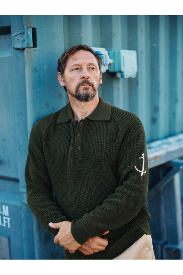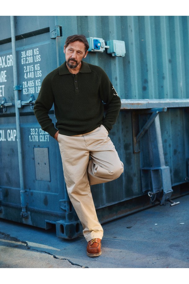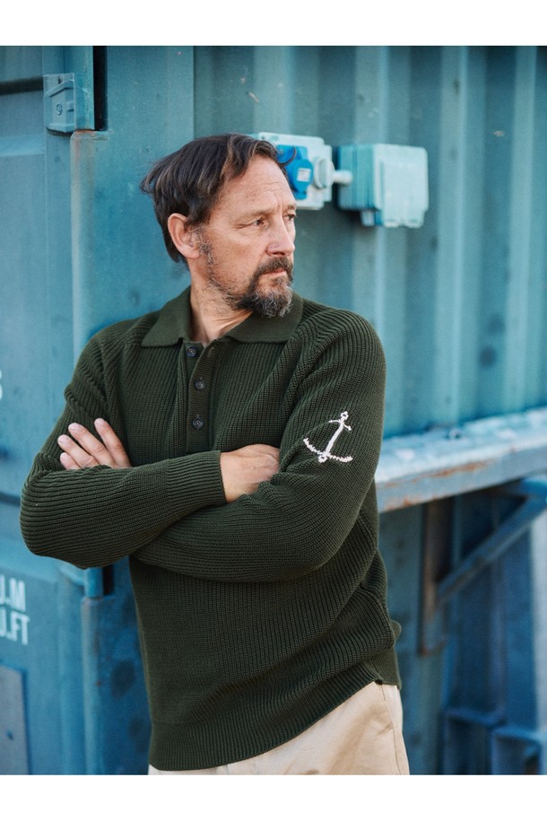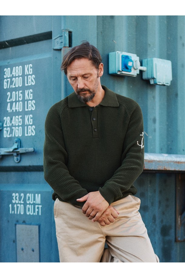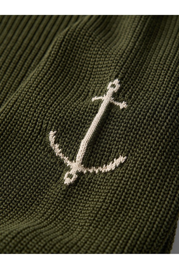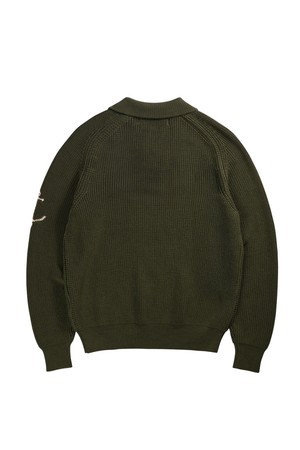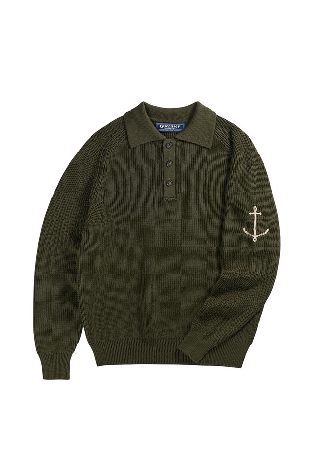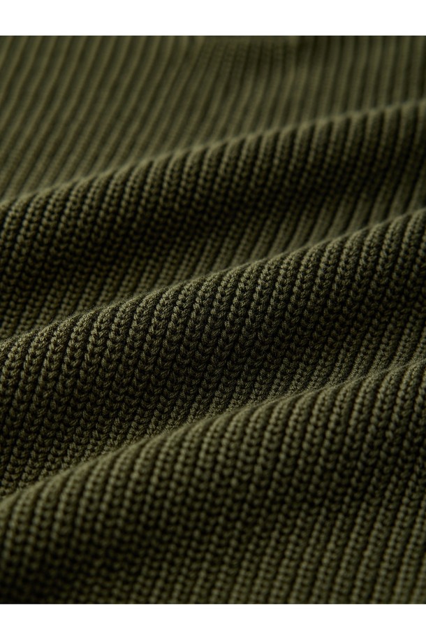 머서라이즈 코튼 새들 카라 니트 - 올리브