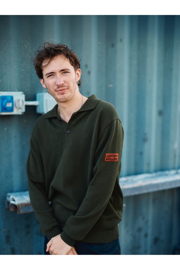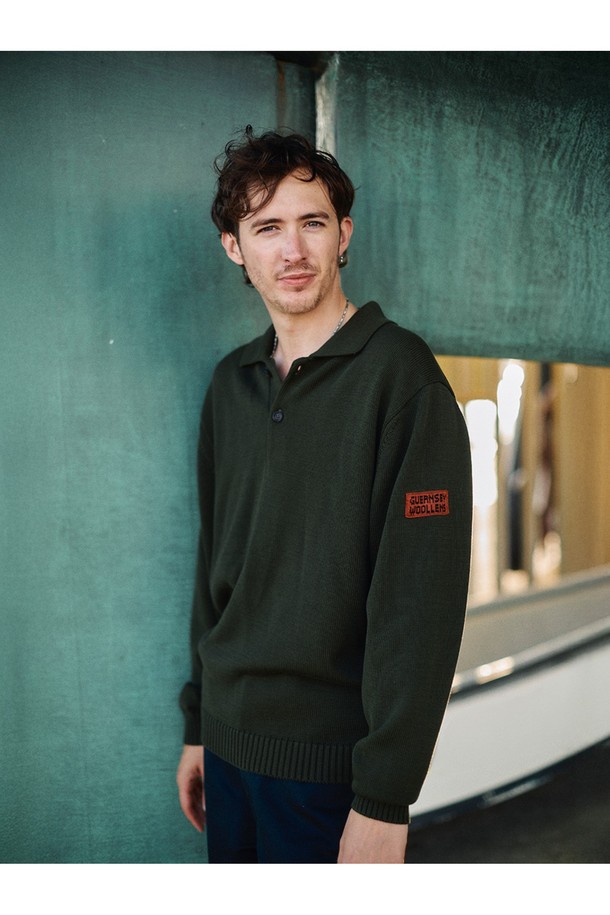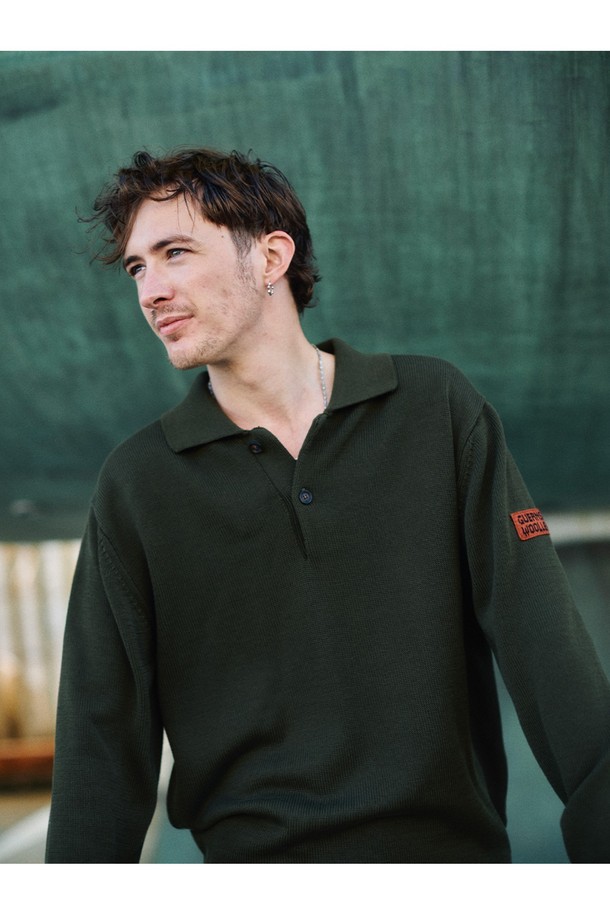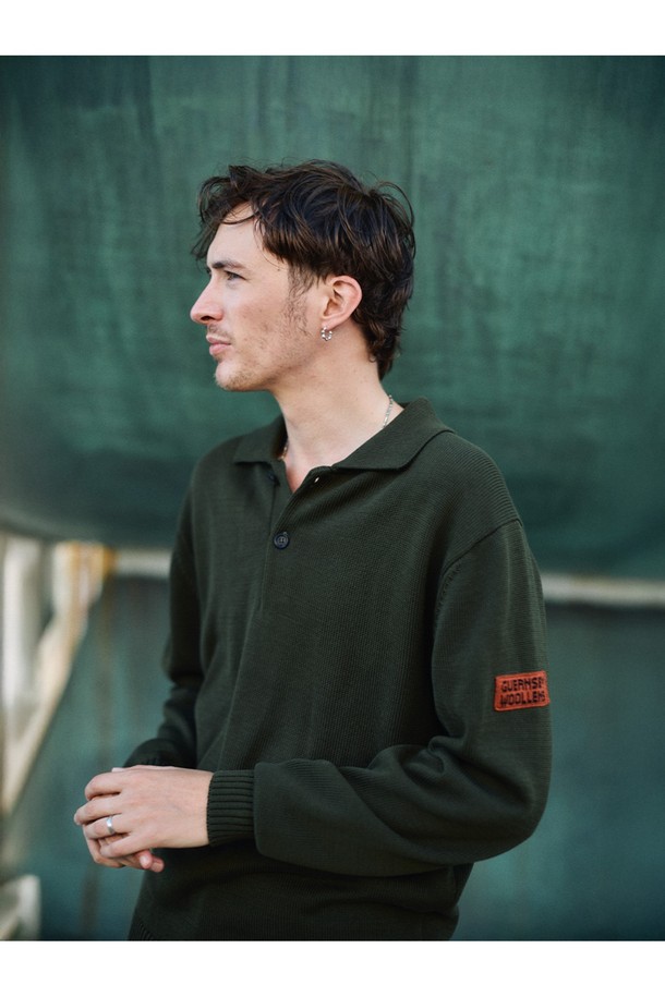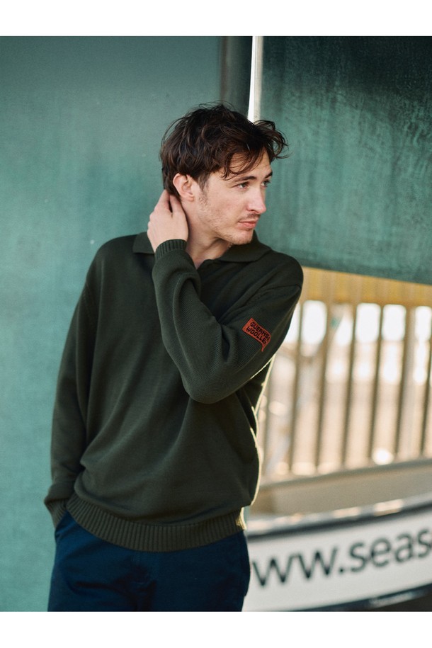 머서라이즈 코튼 카라 니트 - 올리브
