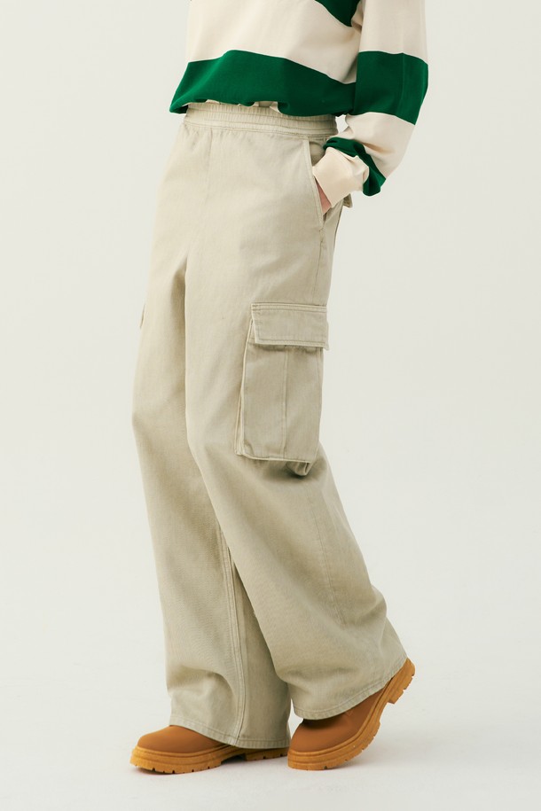 여성 스트릿 써클로고 오버와이드 카고 데님팬츠[LT-BEIGE](UB8DP50_23)