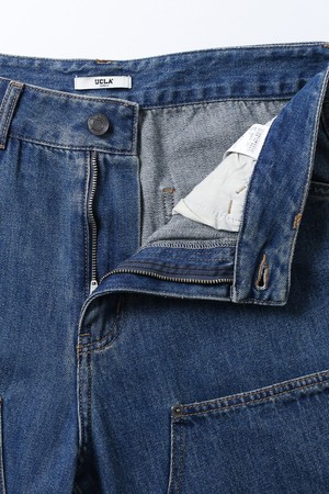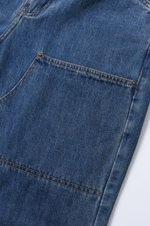 남녀공용 레트로 프레피 더블니 데님 팬츠[MD-INDIGO](UB8DP21_05)