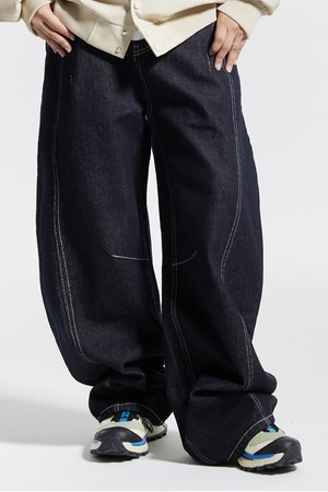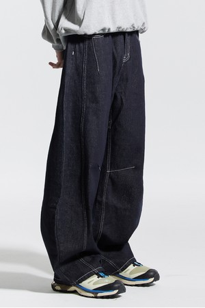 씨알에스디엘 와이드 커브드 스티치 데님 팬츠