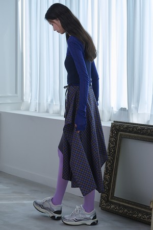 Unbalanced Layered Check Skirt_Blue