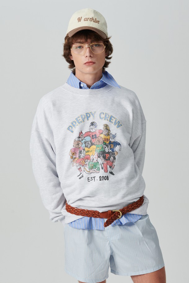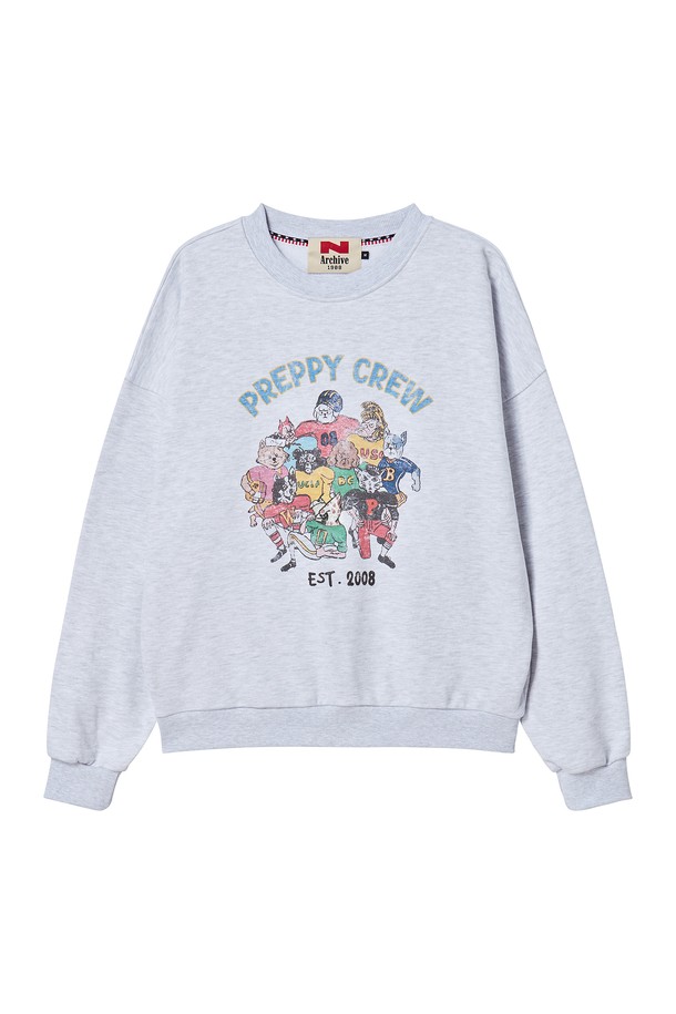 헤비 웨이트 코튼 빈티지 프린트 90's 스웨트 셔츠 그레이