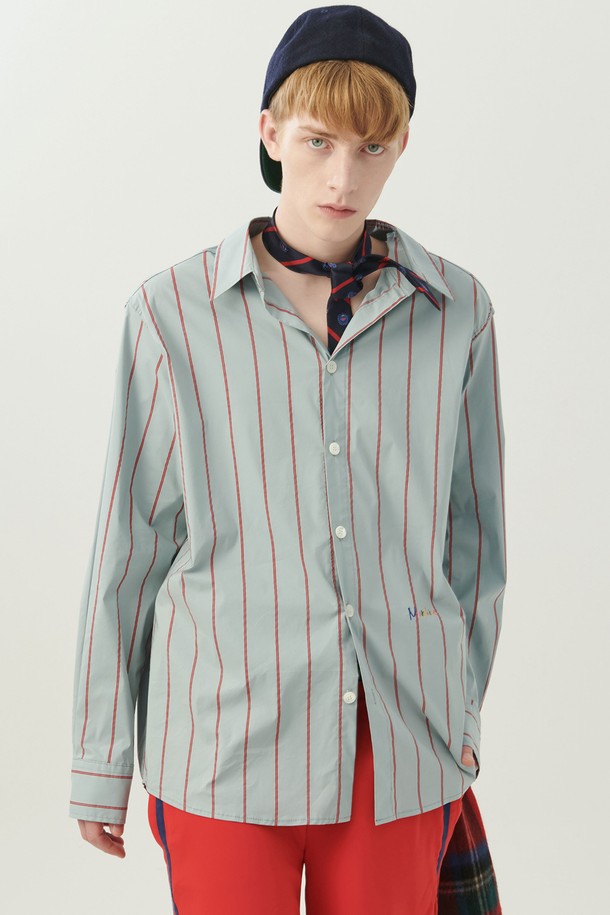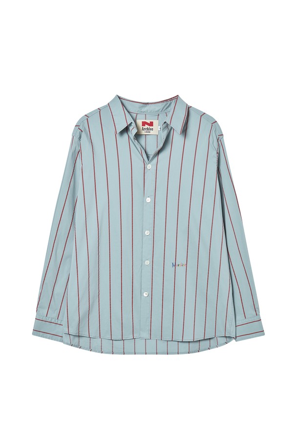 럭스 페브릭 스트라이프 코튼 셔츠 블루
