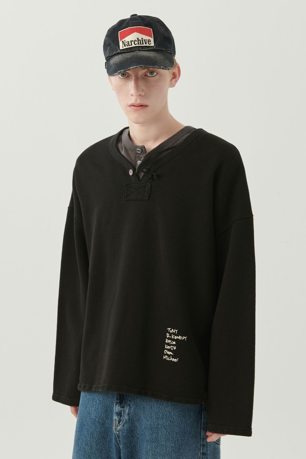 바시티 에라 헤비 웨이트 워시드 코튼 스웨트 셔츠 블랙