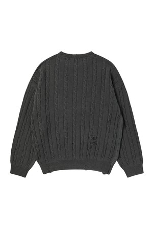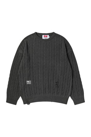 빈티지 데미지 포인트 케이블 니트 차콜 그레이