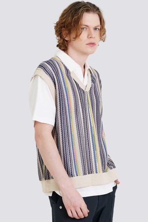 드랍숄더 선염스트라이프 오버핏 베스트 CXS25FKVT801 GRN