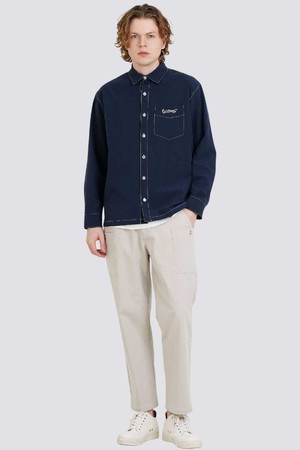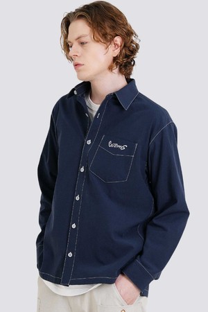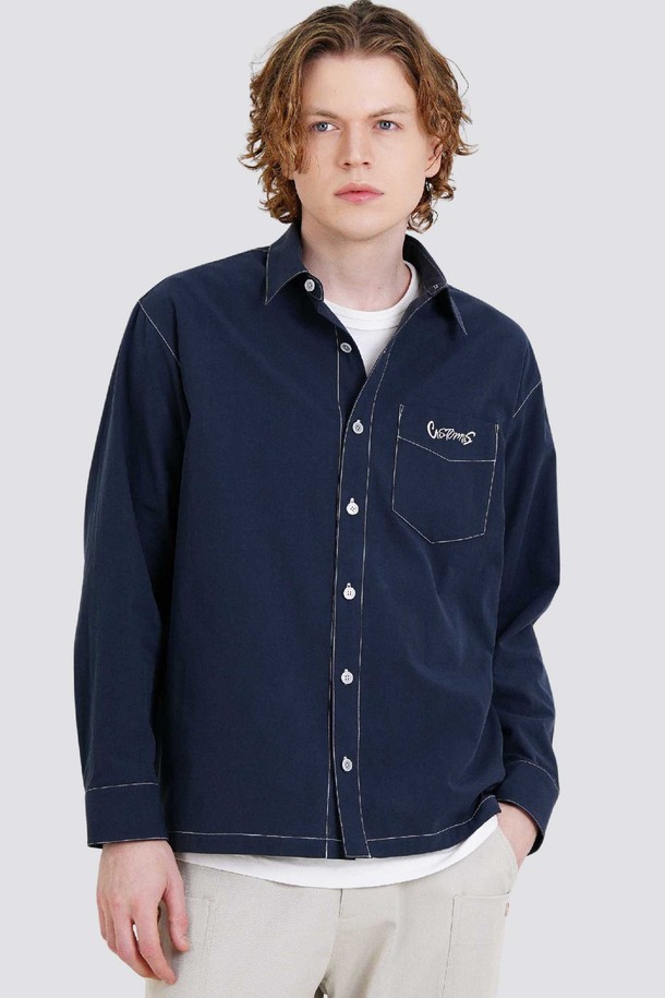 남자 스티치배색 코튼트윌 로고자수 긴팔 셔츠 CXS25FWSH908 NAV