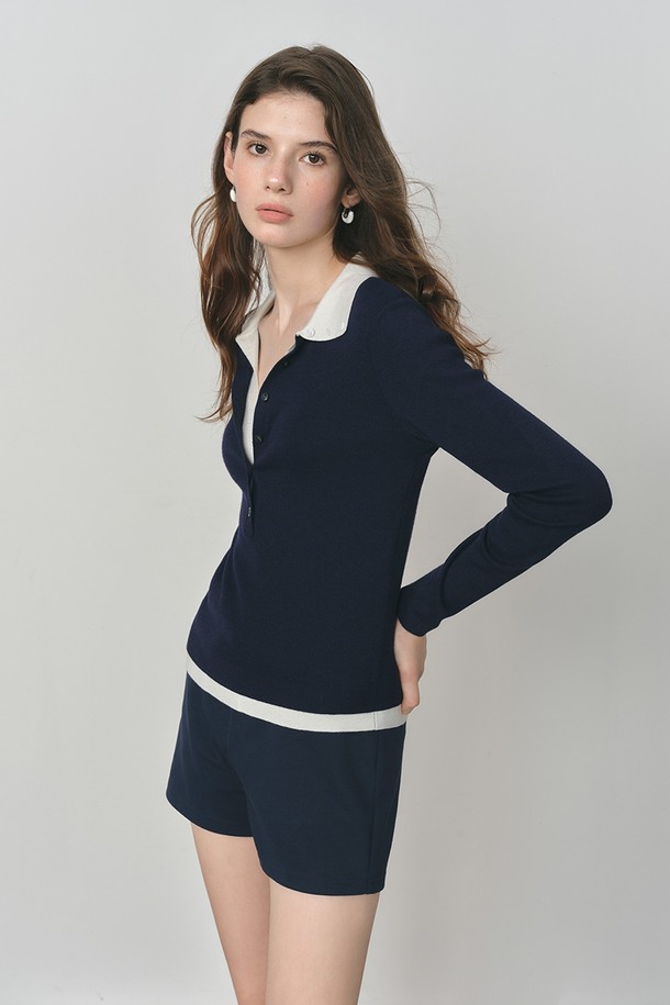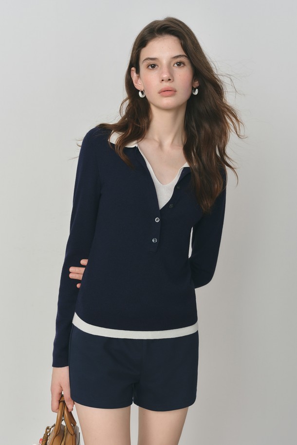 9/25예약배송_WD_Button fake two-piece knit top_NAVY