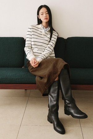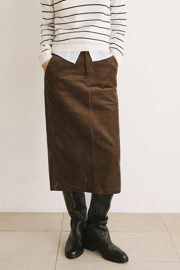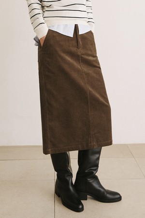 코듀로이 백 슬릿 미디 스커트 [브라운]
