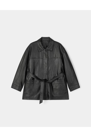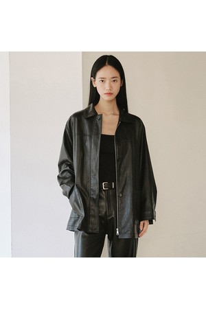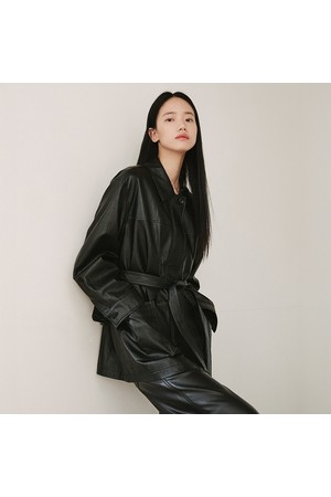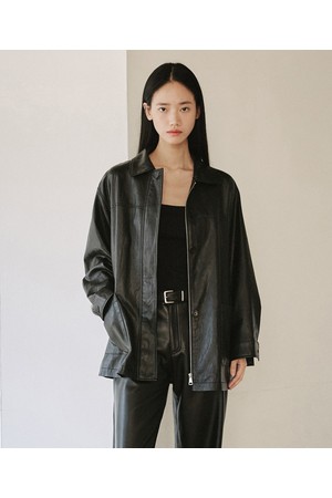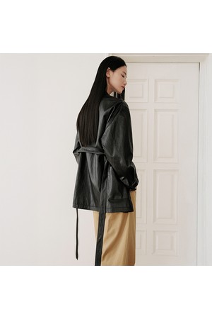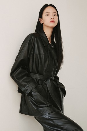 신세틱 레더 벨티드 하프 자켓 [블랙]