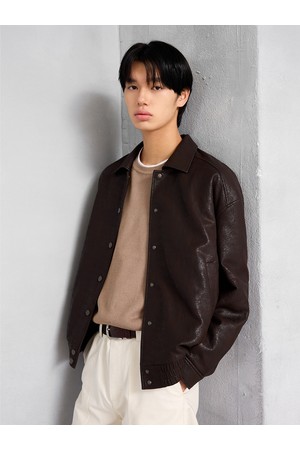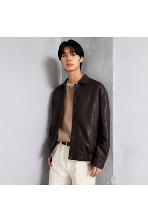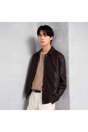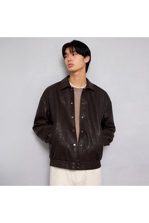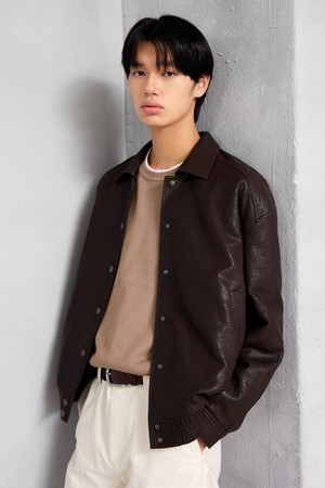유니섹스 신세틱 크랙 레더 퀼팅 블루종 [브라운]