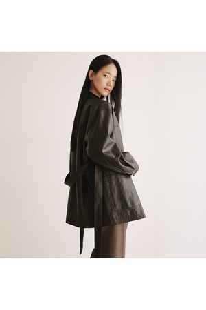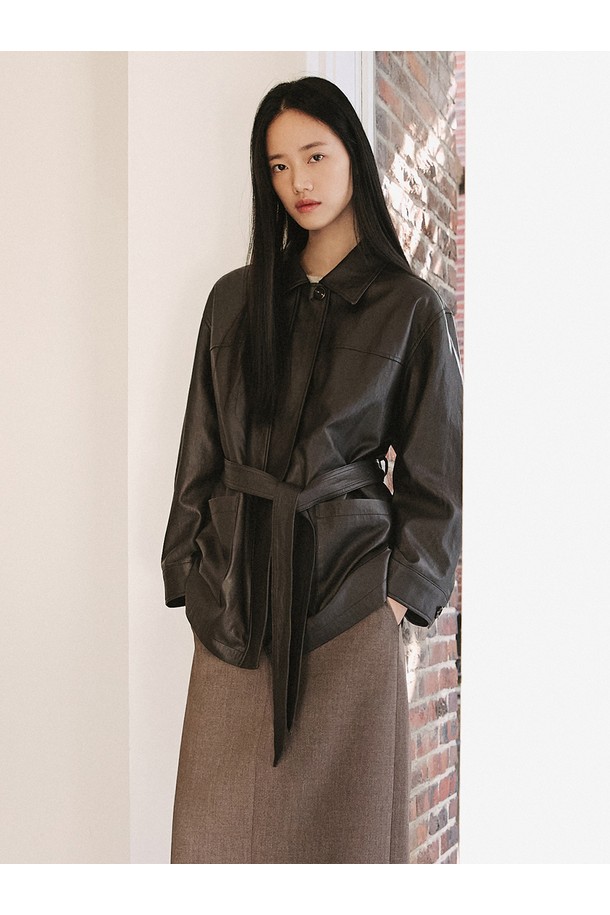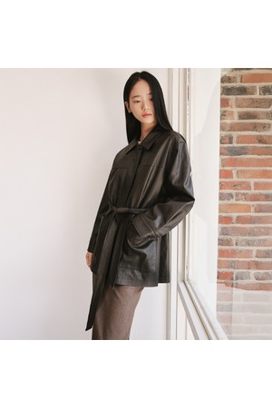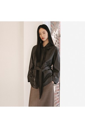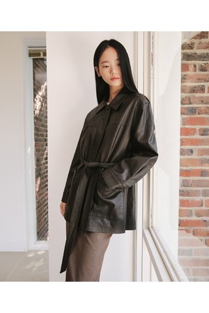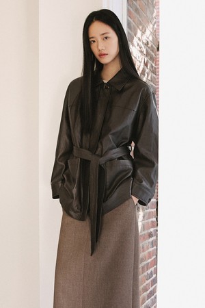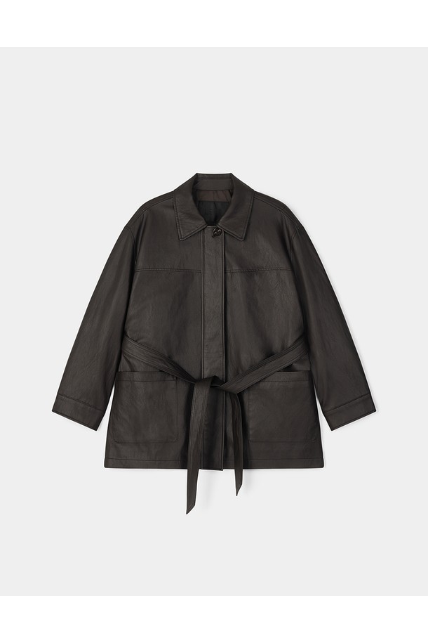 신세틱 레더 벨티드 하프 자켓 [다크브라운]