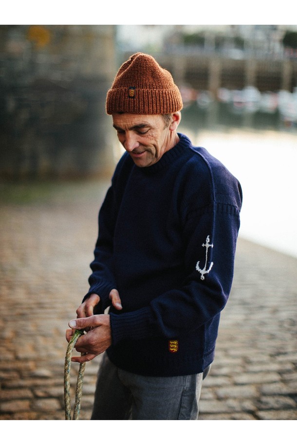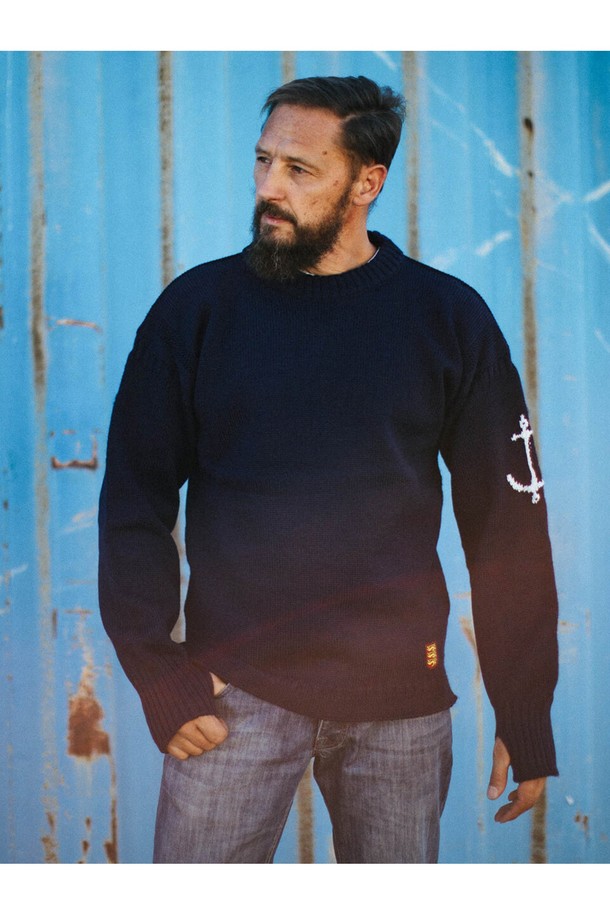 크루넥 홀가먼트 스웨터 - 네이비
