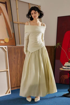 Slanted slit swing neck dress
