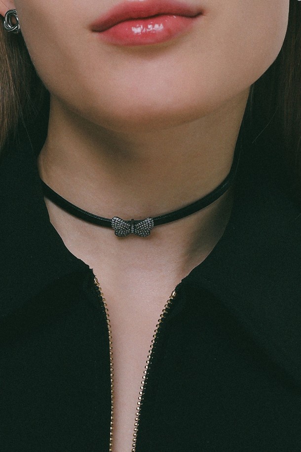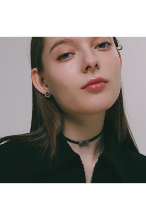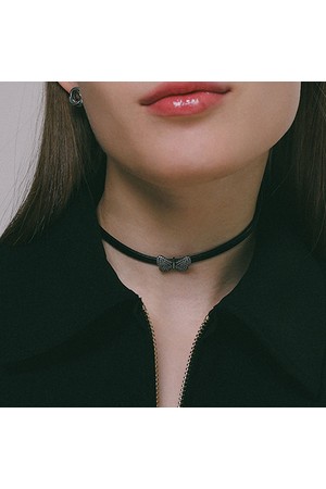 큐빅 버터플라이 레더 초커 목걸이 N01171