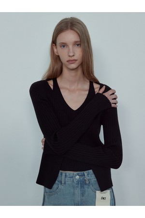 HONA RIBBED SLEEVELESS LAYERED CARDIGAN_NFCA5270