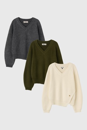[25FW] WOMAN 브이넥 슬릿 하찌 니트 풀오버 [3COL] /WBE3L05531