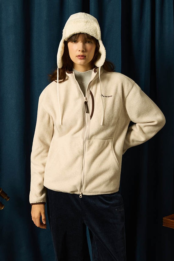 유니 플리스 루즈핏 스탠넥 집업 - 오트밀 QQ423LFTO2