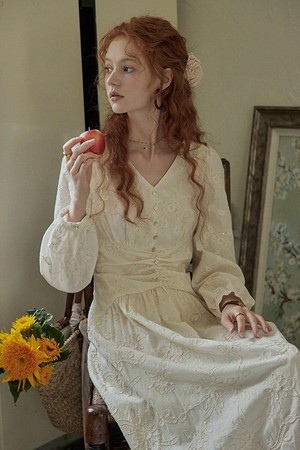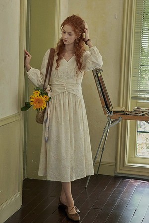 Sequine embroidery shirring dress