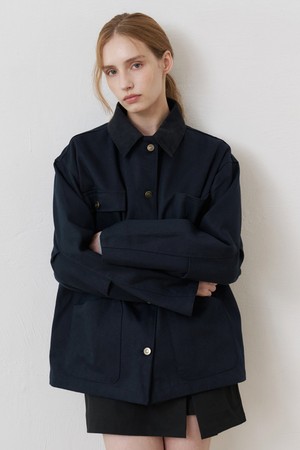 스웨이드 배색 4포켓 워크자켓 NAVY