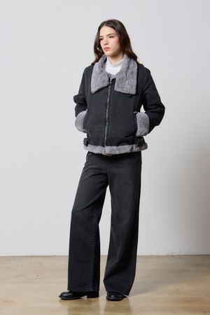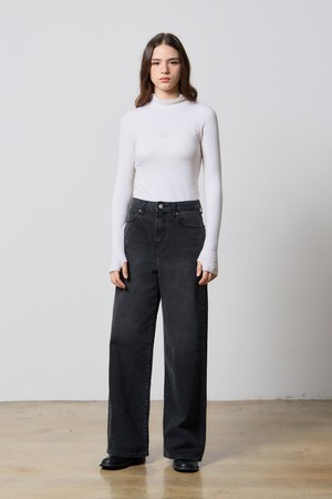 DENIM WIDE STRAIGHT PANTS WASHING BLACK F5