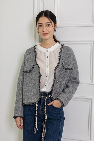 Gray polka dot pocket jacket