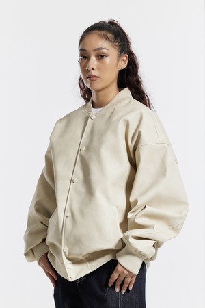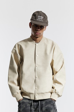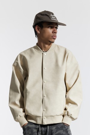 씨알에스디엘 쿼터 내츄럴 워시드 비건 레더 부클 자켓